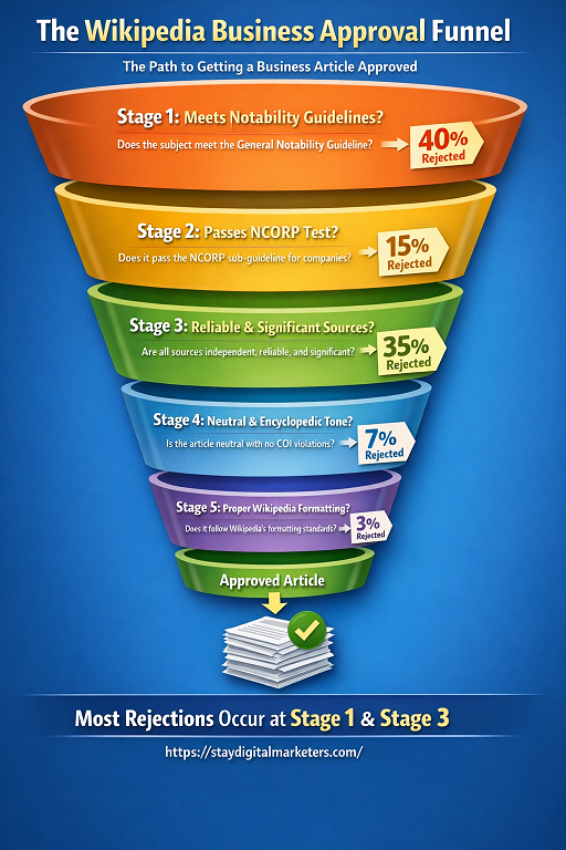 Wikipedia rejection is rarely arbitrary. It follows a predictable logic rooted in policies that have been in place for years and are consistently applied by a large, experienced editor community. Businesses that approach the platform with the right preparation, qualified independent sources established before submission, a neutral encyclopedic tone throughout, full COI disclosure, and realistic expectations about the time and evidence required, have a substantially better approval rate.
