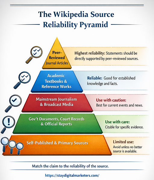 Understanding exactly which source types Wikipedia’s guidelines recognize, and why, is the difference between a citation that survives and one that gets deleted within hours. This guide breaks down all 11 accepted source categories, explains the reasoning behind each, and gives concrete examples so editors and content strategists can cite confidently.